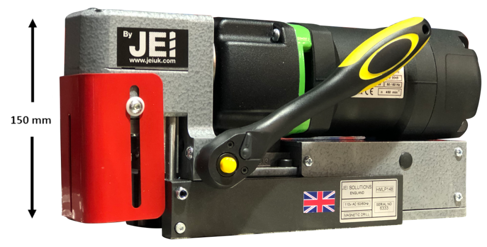 Designed, built and manufactured in the UK, the Ultra Low Profile magdrill is driven with a powerful 1050 watt motor, capable of producing holes in steel up to 35 mm diameter, through steel plate up to 35 mm thick, using JEI's short series Turbo™ Steel HSS cutters or Turbo™ Tough TCT cutters.