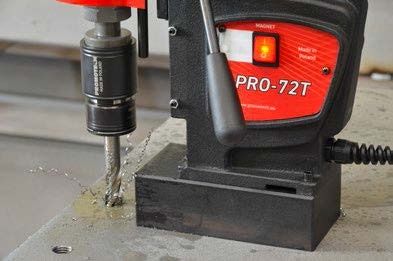 The PRO-72T drilling machine is suitable for hole cutting and tapping applications. Powerful 1600 W variable speed motor enables milling capacity up to 70mm (2-3/4”) and drilling capacity up to 25 mm (1”).