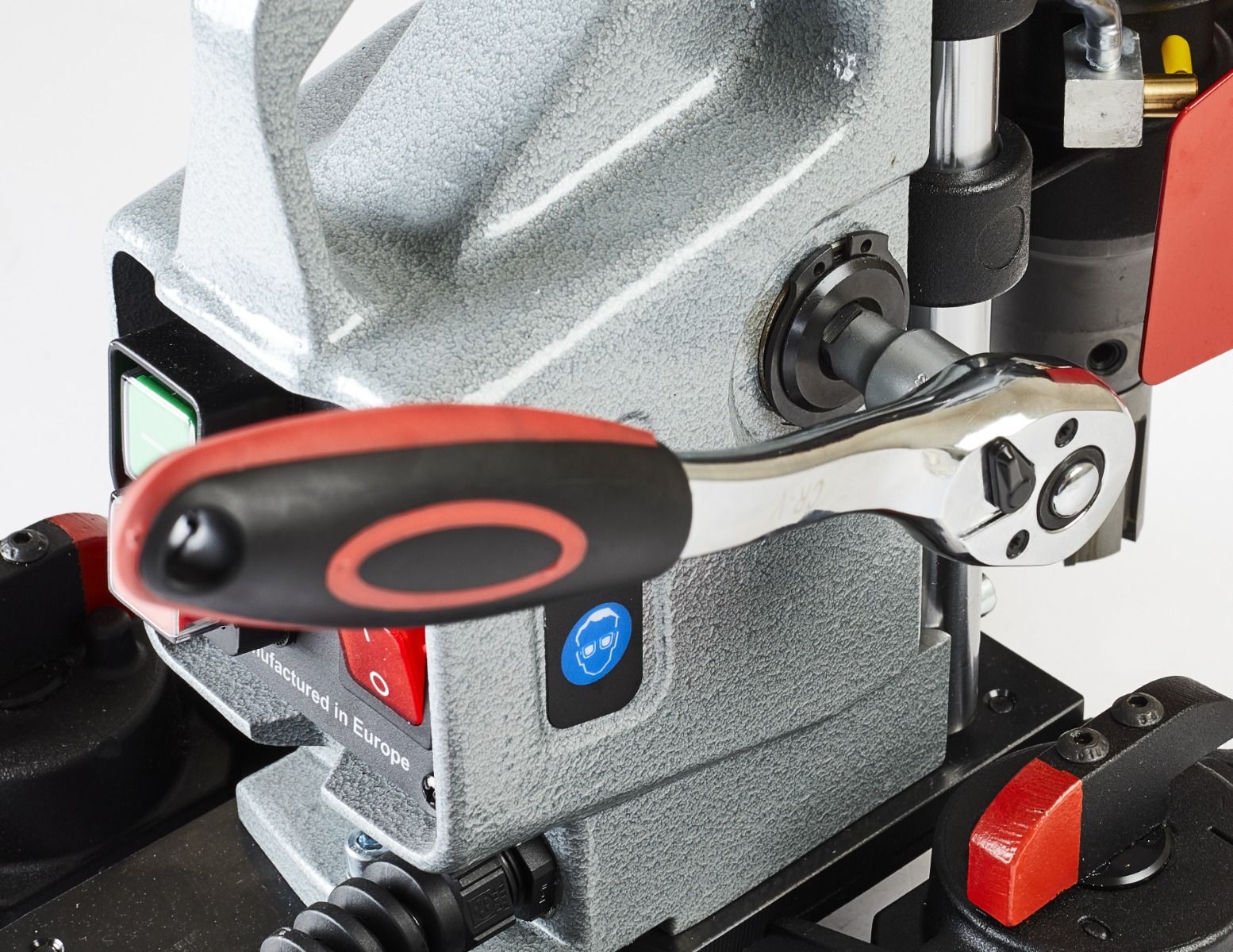 - Detachable feed ratchet handle.