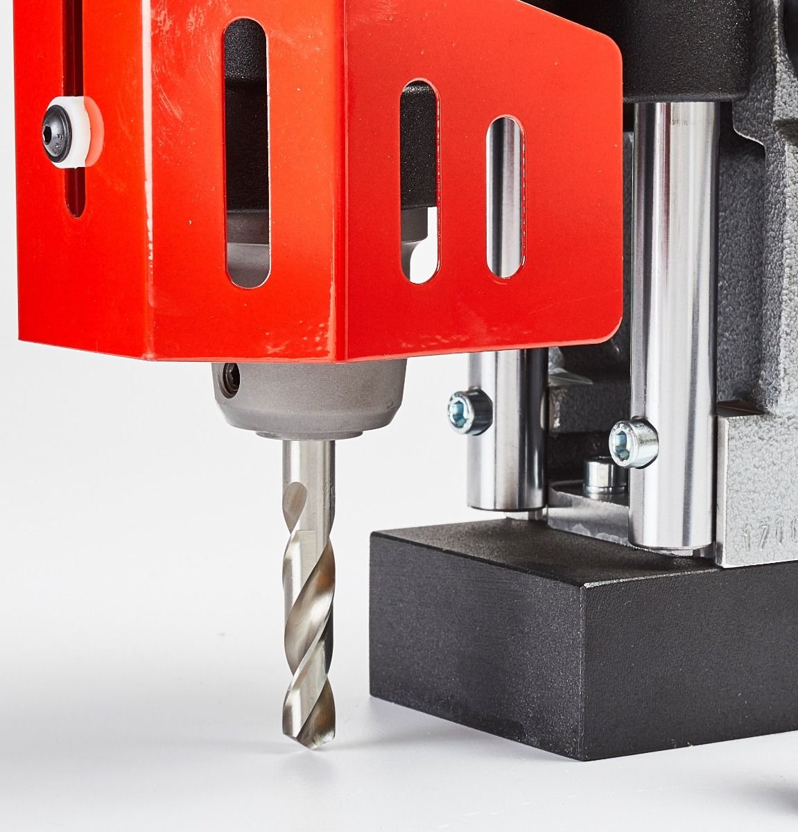A compact and powerful magnetic drilling machine with a ratchet handle system, designed to enable simpler drilling.